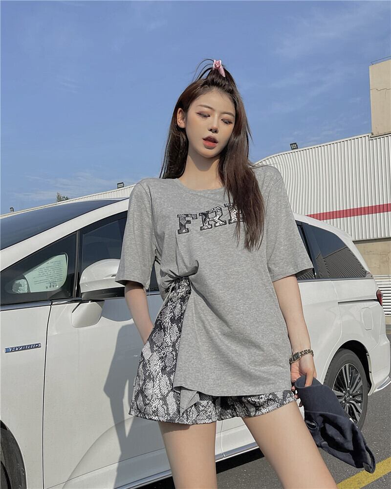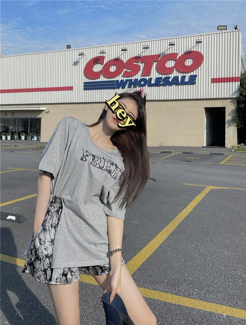 Tシャツ レディースサマープリントカジュアルルーズグレートップス 夏物 セブンプリンセス70243024346