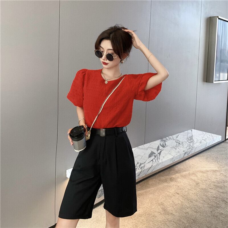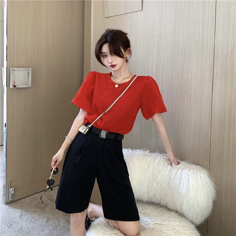 ブラックカジュアルパンツ サマー薄手ハイウェストルーズ 夏物 セブンプリンセス97392091776