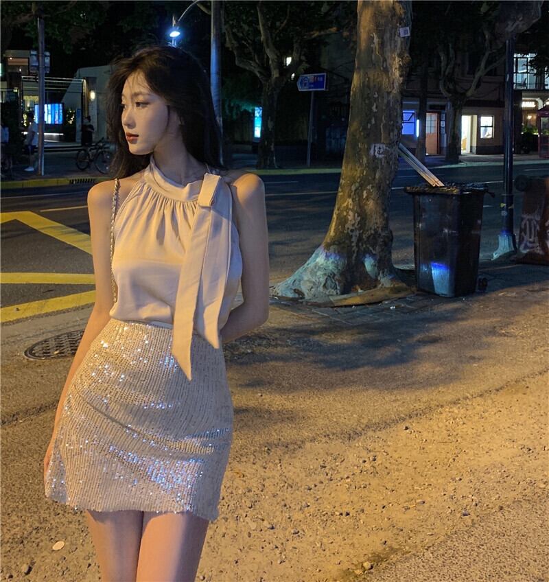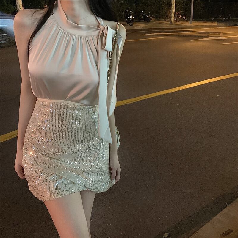 ホルタートップス サマーノースリーブショートサテン薄手レディース 夏物 セブンプリンセス55384050506