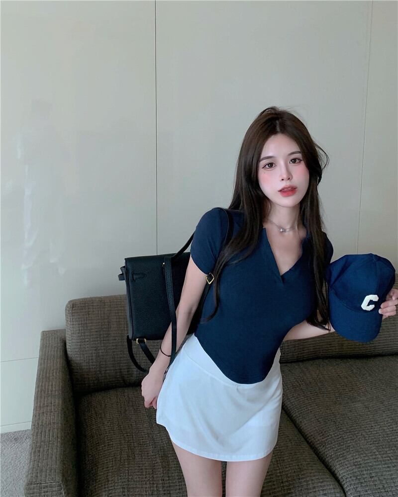 カラーTシャツ サマースリムレッドショートスタイルトップス 夏物 セブンプリンセス50483318813