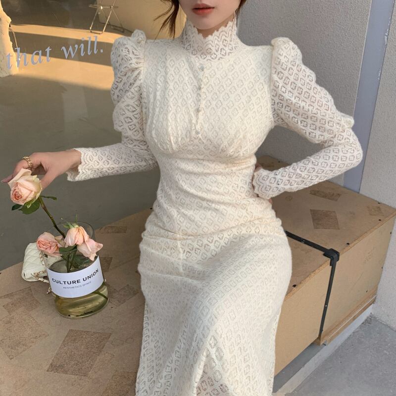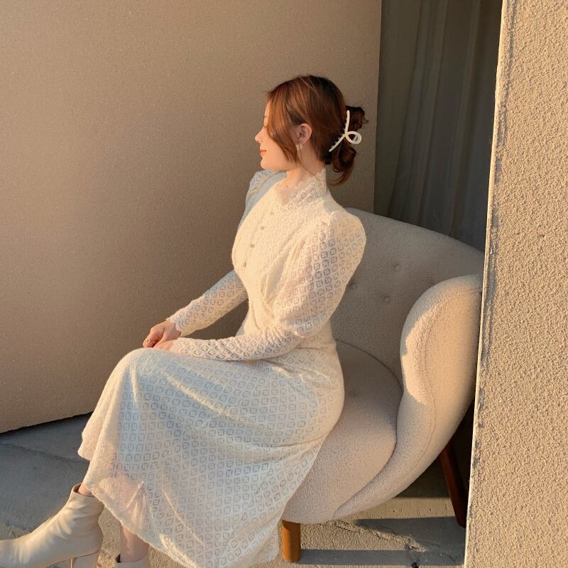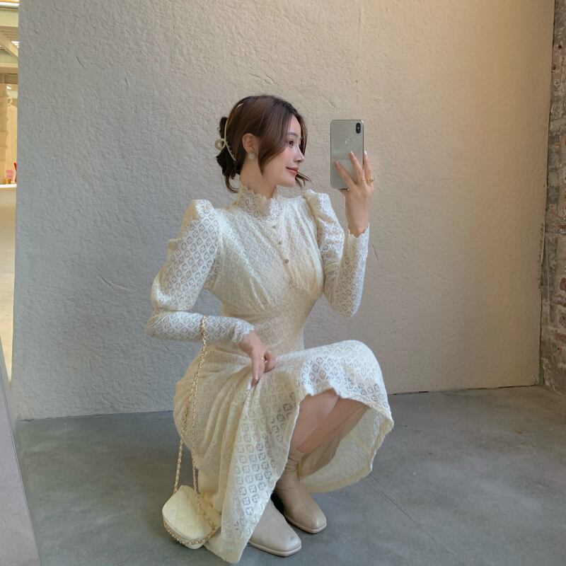 スリーブレースドレス スプリングサマーロングカラーウェストスカート 春物 夏物 セブンプリンセス57801506093