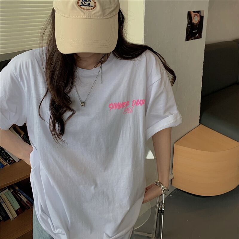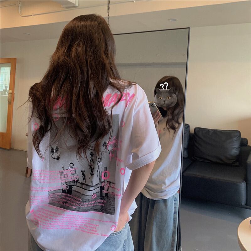 バックプリントTシャツ サマースタイルルーズラウンドネックカジュアルホワイトトップス 夏物 Oネック セブンプリンセス78840075753