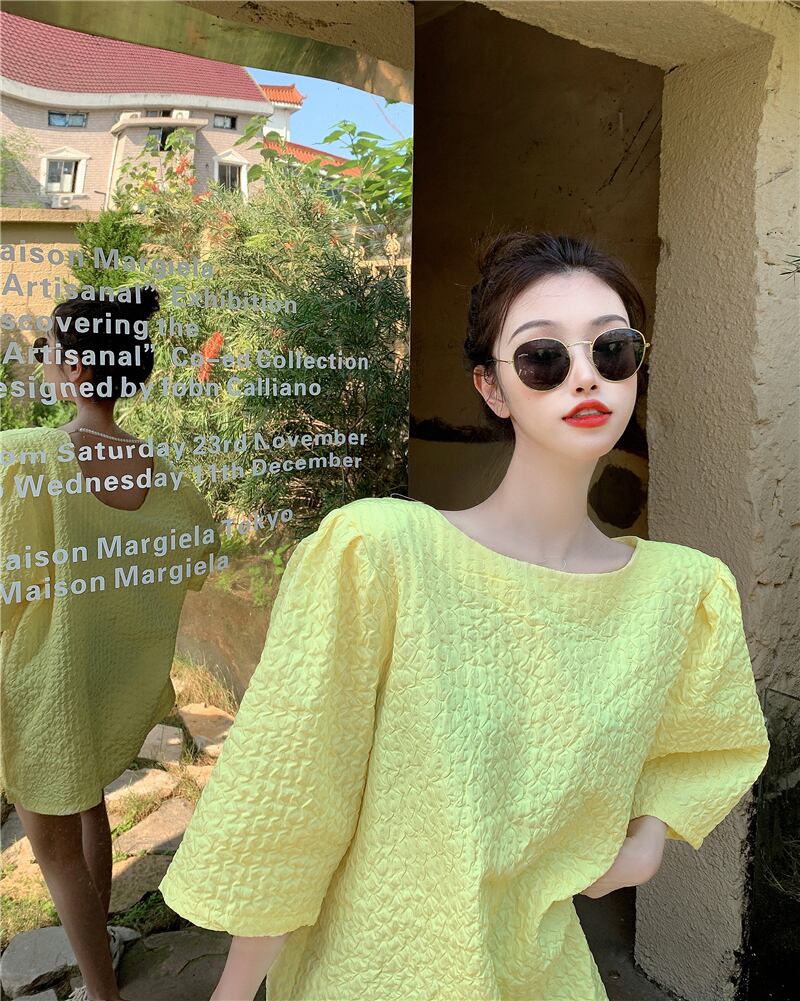 サマー薄手スリーブトップス パールチェーン ルーズスタンダードスタイル半袖シャツ ショート レトロ ハーフスリーブ 夏物 真珠 セブンプリンセス22187895866