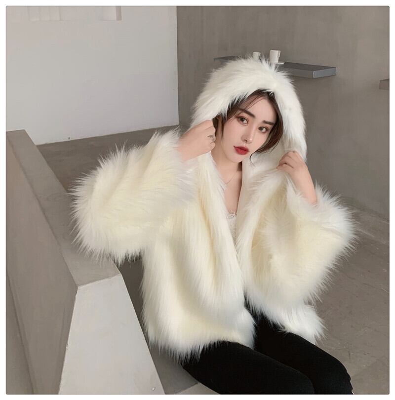 ファーフェイクフードジャケット スプリングサマースタイルルーズカーディガントップス 春物 夏物 セブンプリンセス93746524512