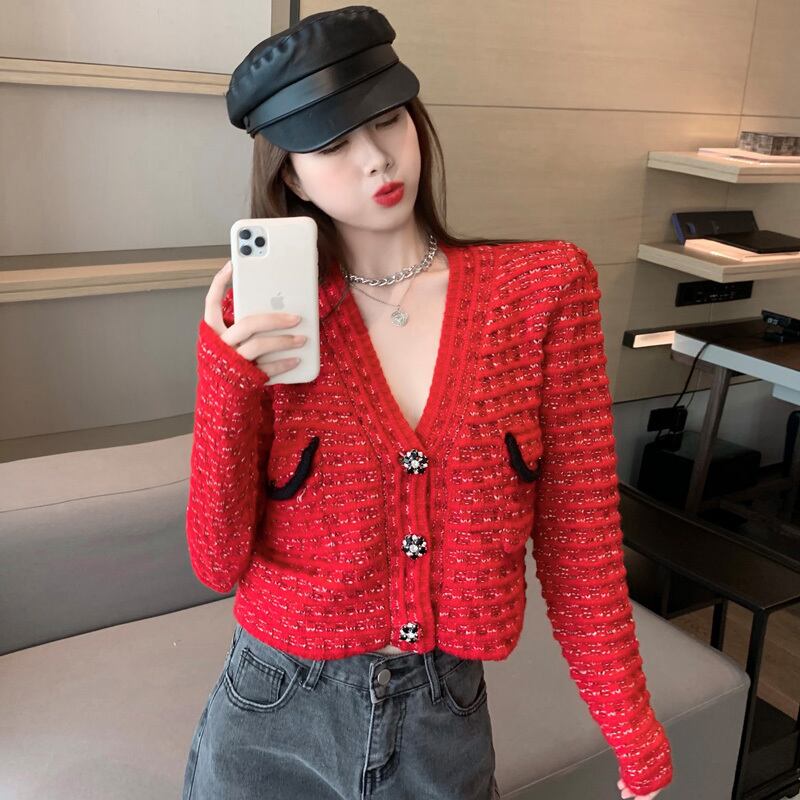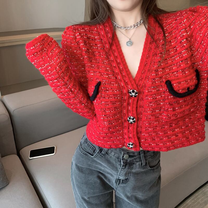 レッドセーター スプリングサマールーズショートVネックトップス 春物 夏物 セブンプリンセス44808319373