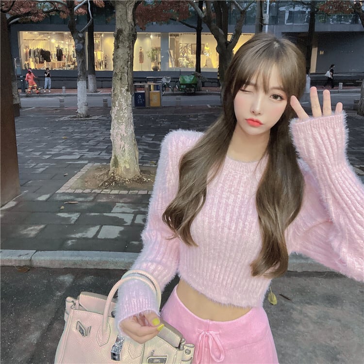 ショートプルオーバー セーター スプリングサマースリムトップス ラウンドネック ロング 春物 夏物 Oネック セブンプリンセス64447151445