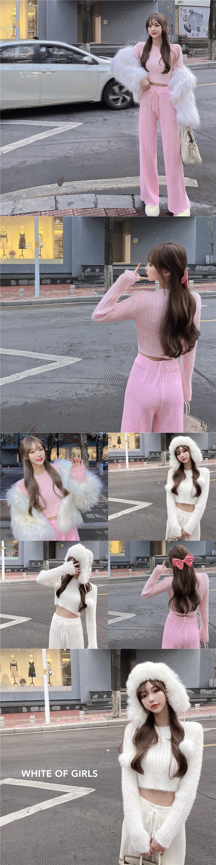 色:白いズボン,ホワイトトップ,ピンクのパンツ,ピンクトップ