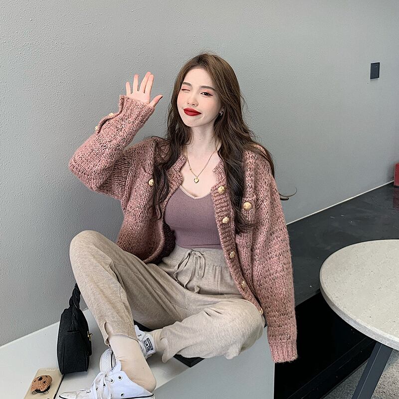 スタンダードルーズセーター カーディガンジャケット レディースオータムウィンターレッドニットトップス レトロ 秋物 冬物 セブンプリンセス87524695444