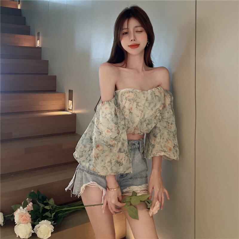 シフォンシャツ スリーブトップス サマー薄手スタンダードフローラルショート レトロ 夏物 花柄 セブンプリンセス10590358371