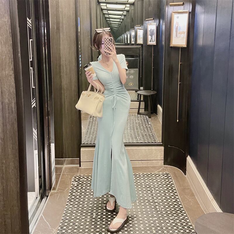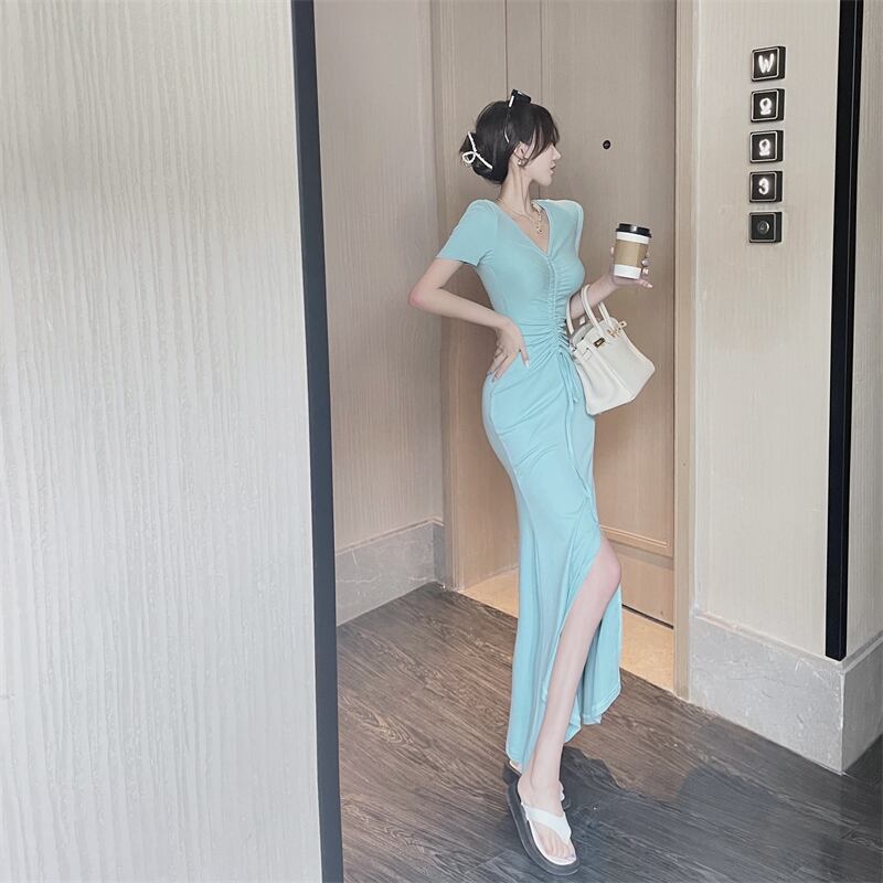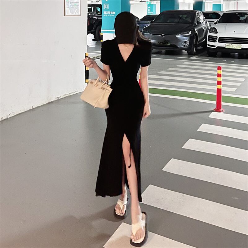 スタイルドレス ウェストサマーVネックニットスカート 薄手サイドスリットロング 夏物 セブンプリンセス51998580756