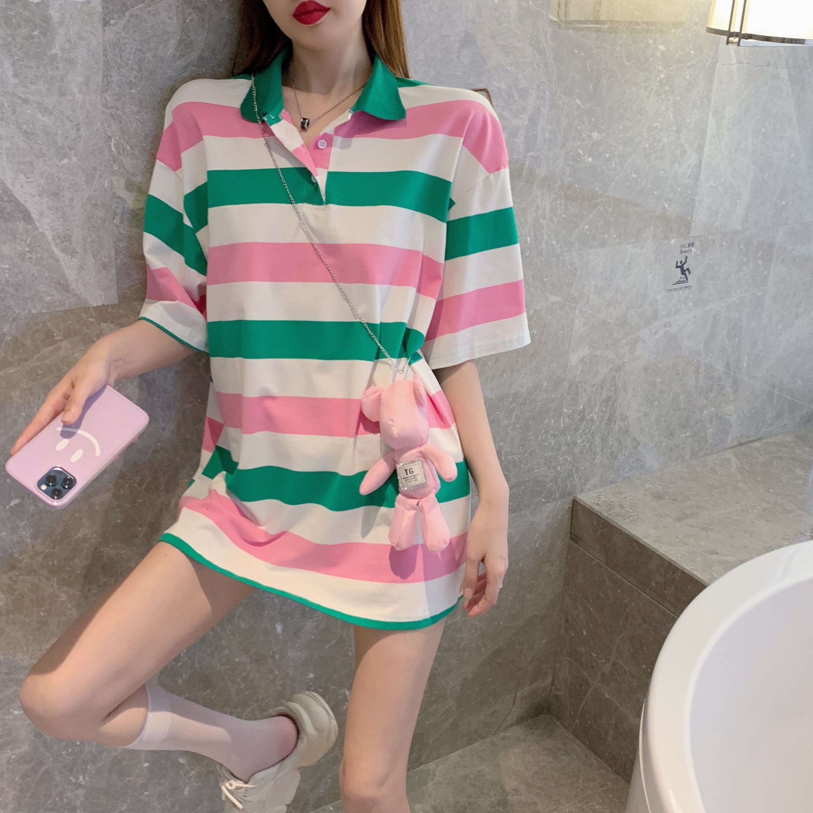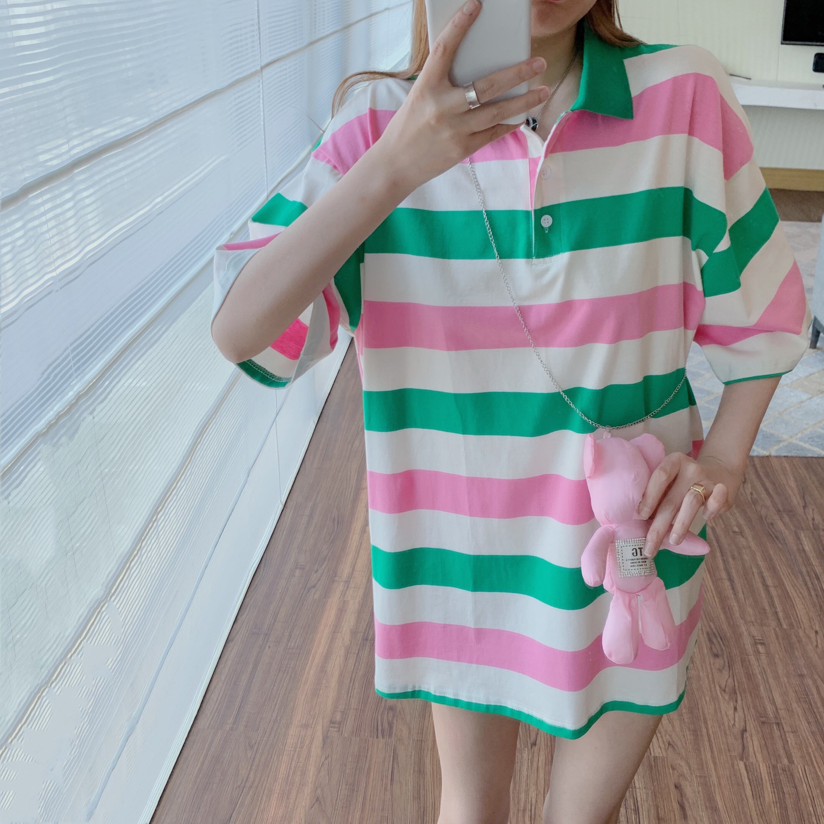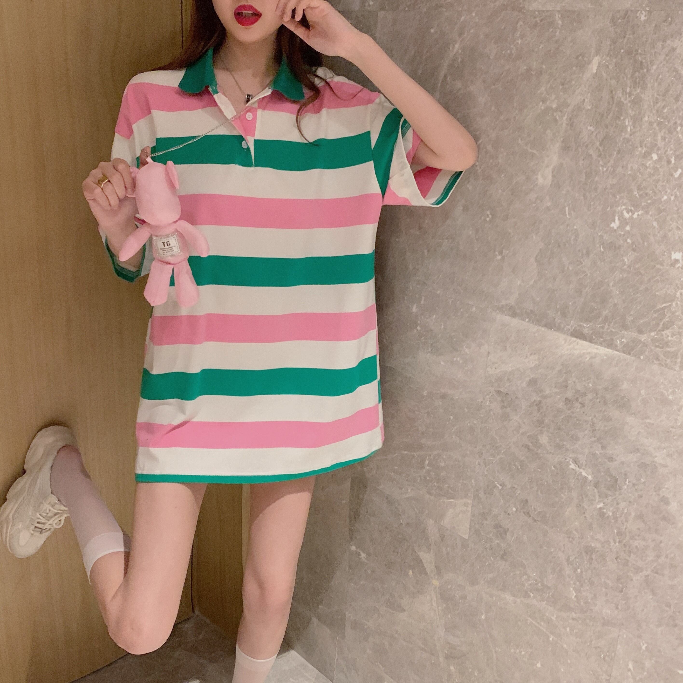 カラーTシャツ サマーストライプルーズカジュアルレッドトップス 夏物 セブンプリンセス867491114