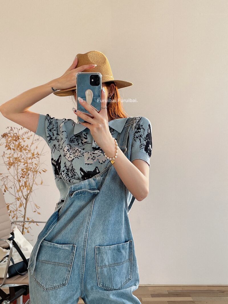 セーター 薄手レディースサマーショートプリント柄スリムプルオーバー トップス 夏物 セブンプリンセス21964514132