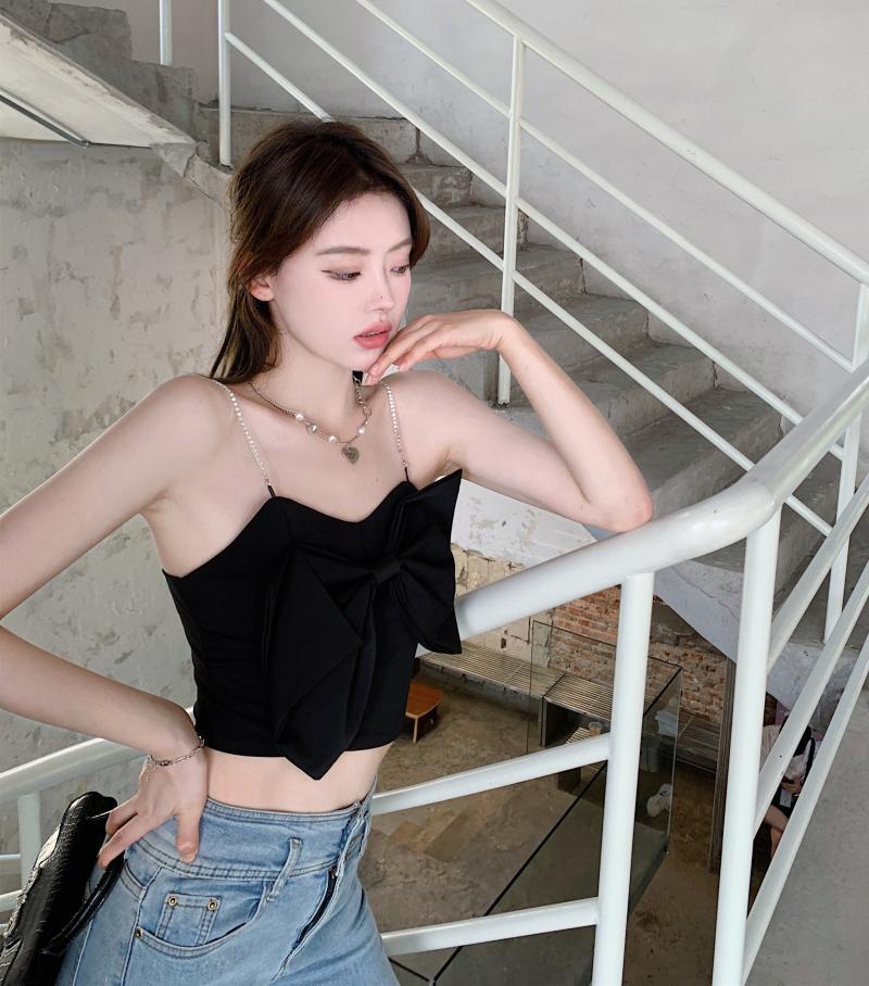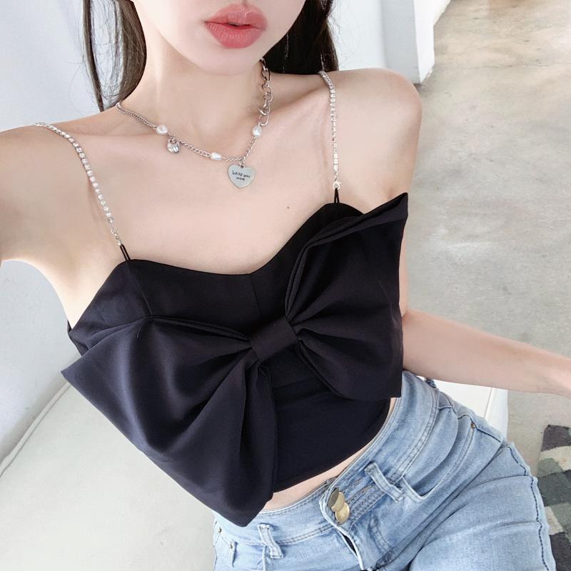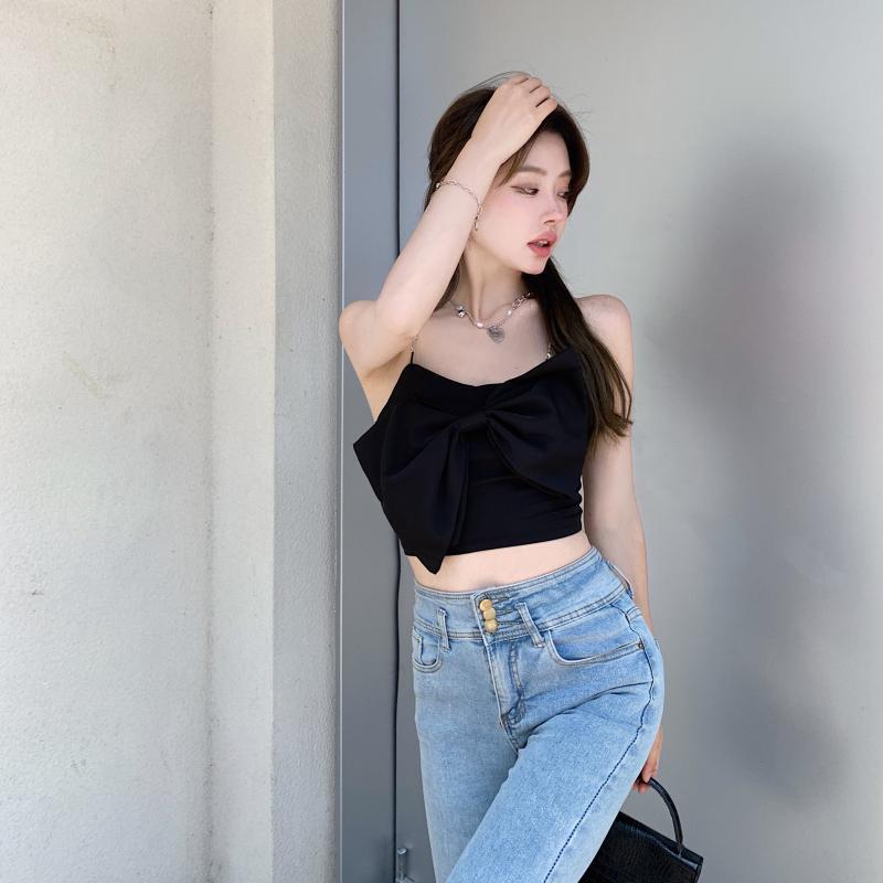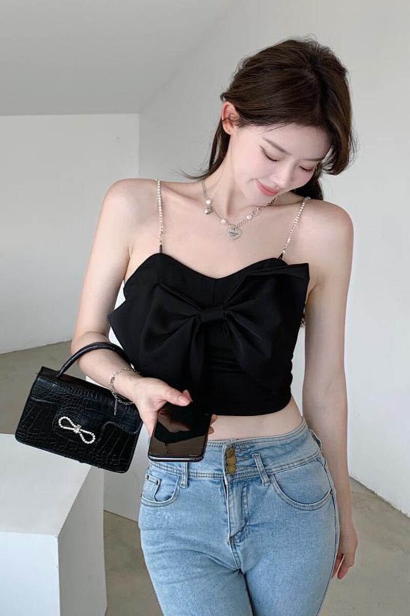 バックレディーススリム薄手ブラックトップス リボン サマー 夏物 セブンプリンセス21900658491