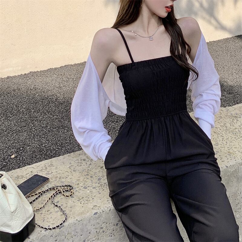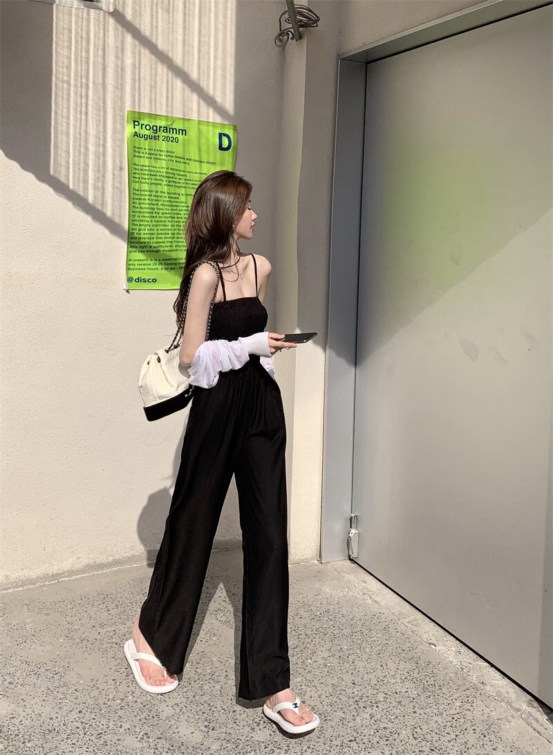 ブラックジャンプスーツ オールインワン サマー薄手ルーズパンツ カジュアル 夏物 セブンプリンセス30702639935