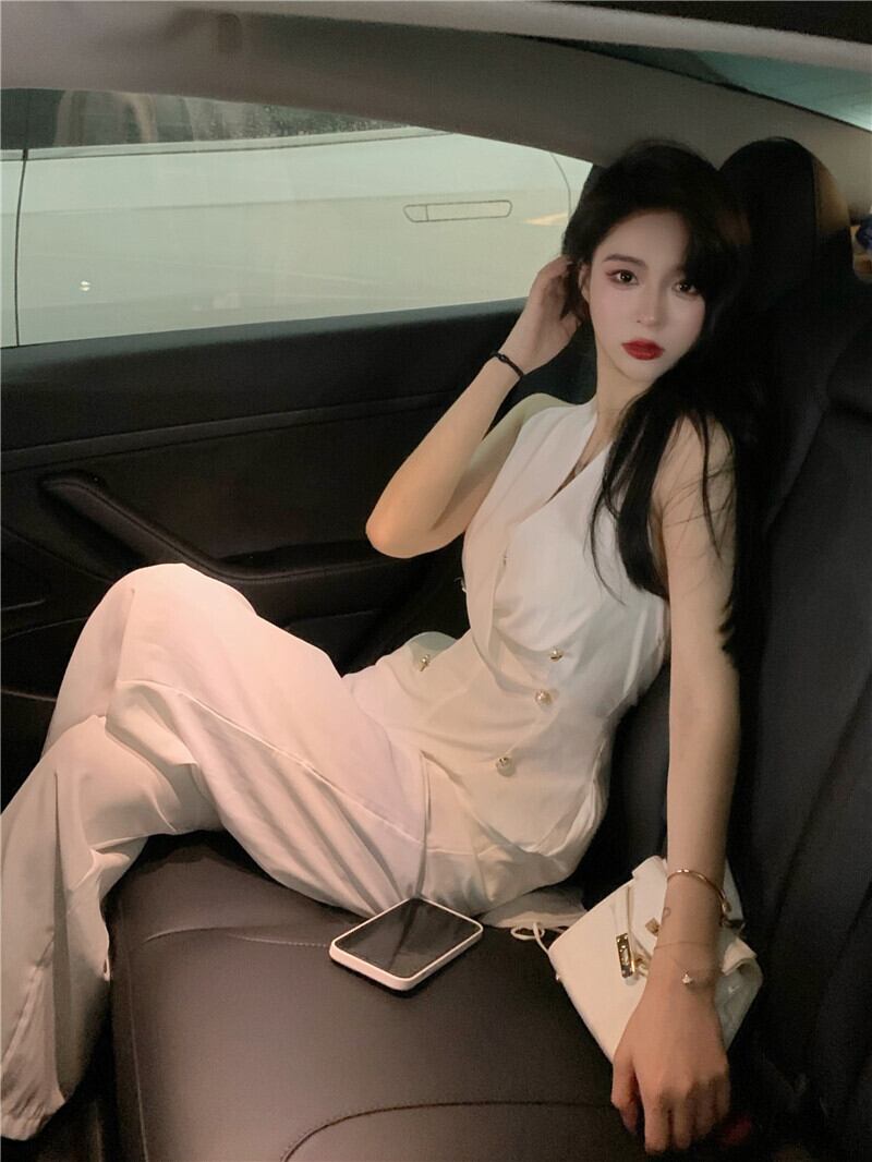 ワンピースパンツ サマー薄手スタイルノースリーブハイウェストジャンプスーツ オールインワン レッド 夏物 セブンプリンセス33474791392