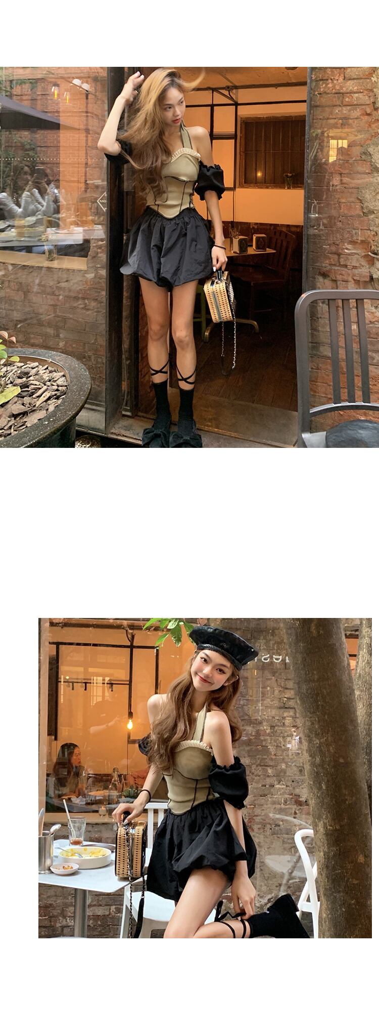 レディースサマーショートトップス ブラックスカート ストリート 夏物 セブンプリンセス80958154122