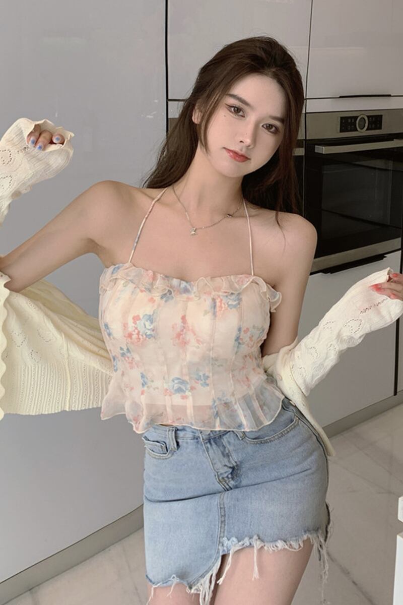 ショートサマーホルターバックノースリーブトップス 大人ガーリー スウィート キュート カジュアル 夏物 セブンプリンセス14061178205