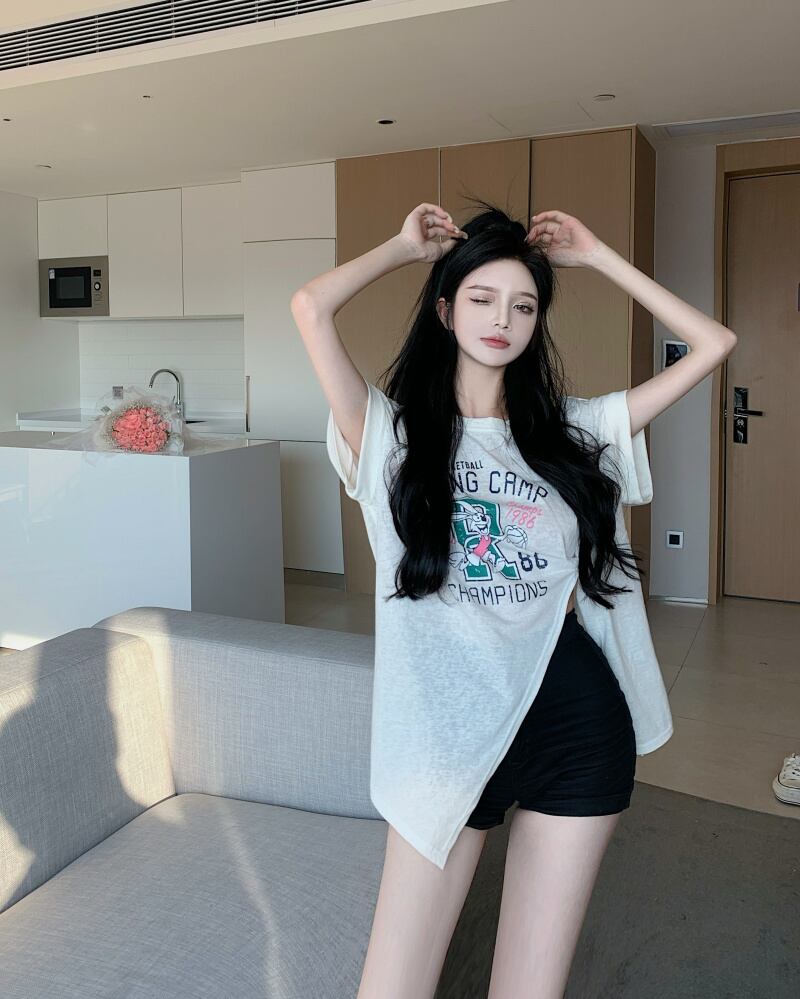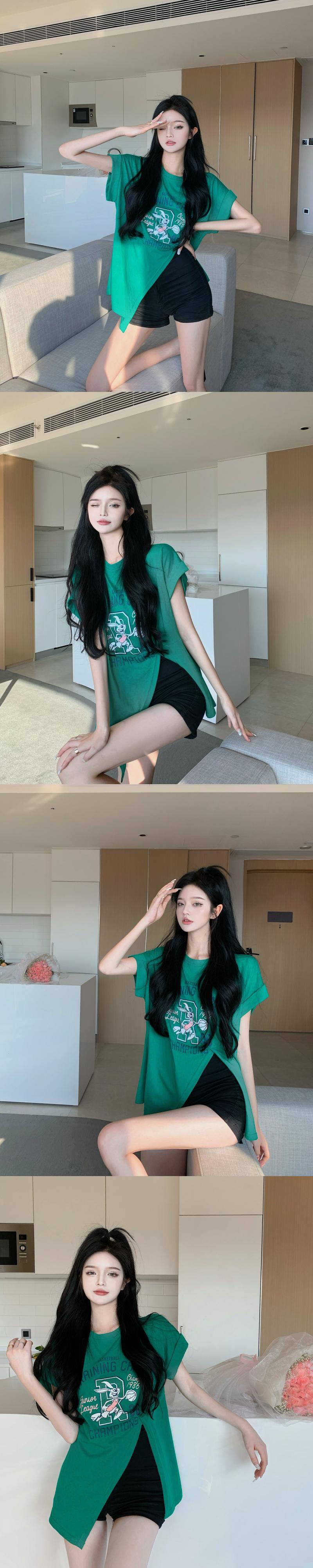 グリーンTシャツ シャツ サマープリント柄ルーズカジュアル 夏物 セブンプリンセス48676554694