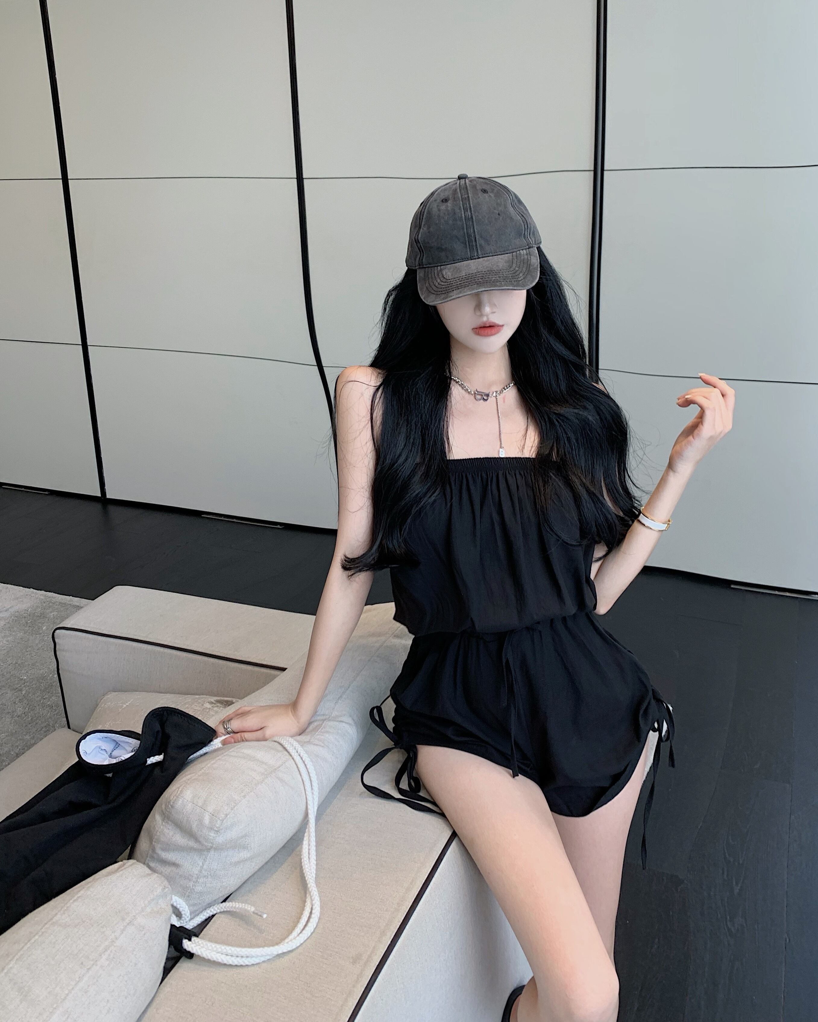 トップス ジャンプスーツ オールインワン レディースサマーショーツ ハイウェストウェスト薄手ギャザー 夏物 ブルマー セブンプリンセス29213366496