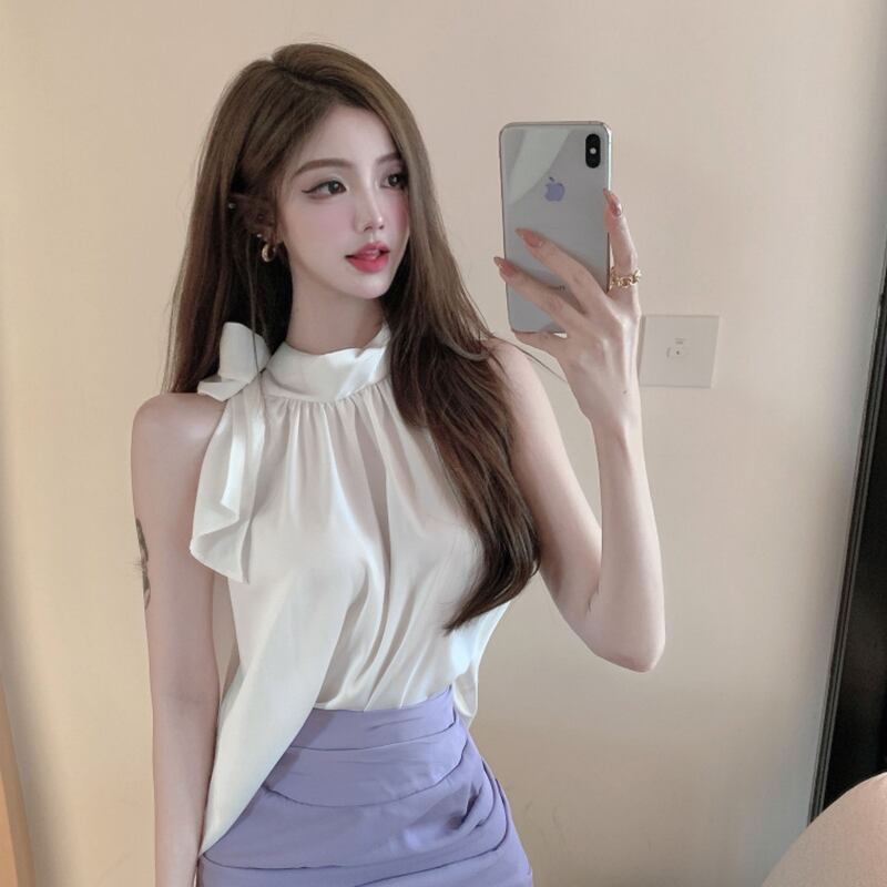 ルーズノースリーブホルターホワイト薄手 サマー 夏物 セブンプリンセス43805511256