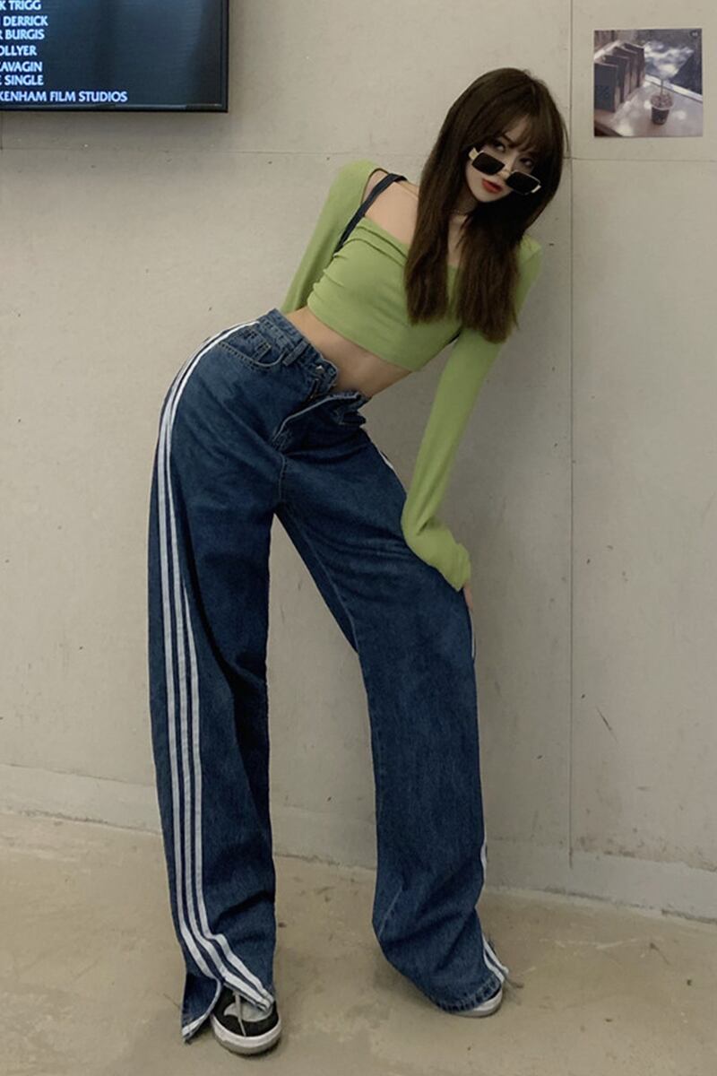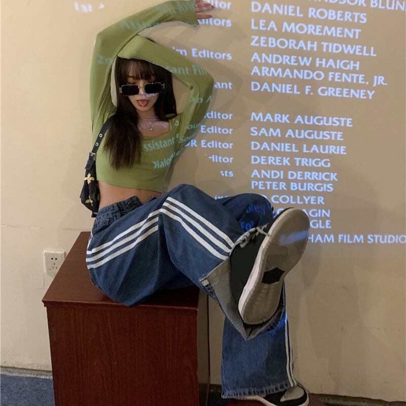 ストライプジーンズ サマー薄手ルーズパンツ 夏物 ワイドレッグ ワイドパンツ セブンプリンセス9600989284