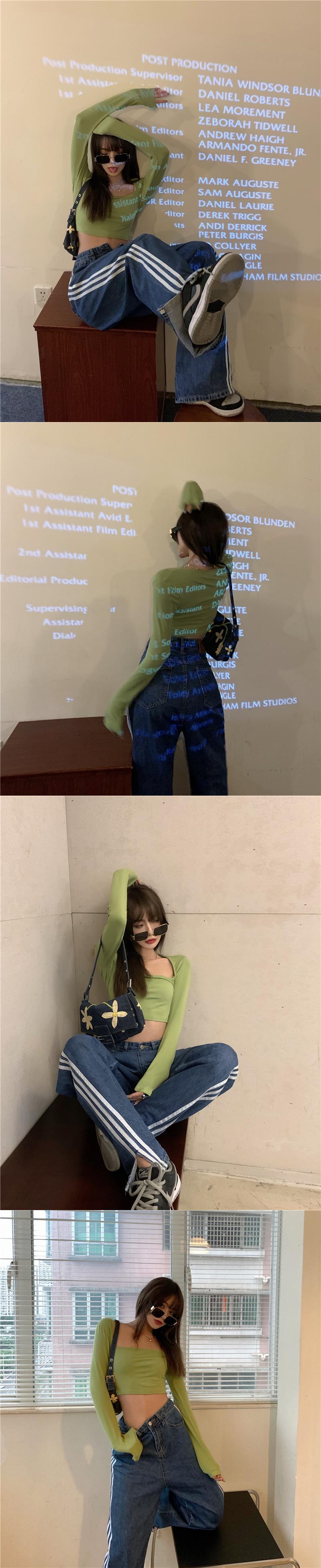 色:グリーントップ,ウエストジーンズ