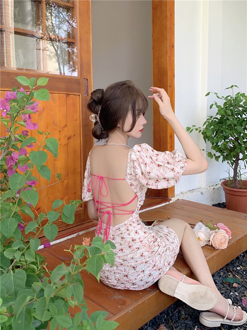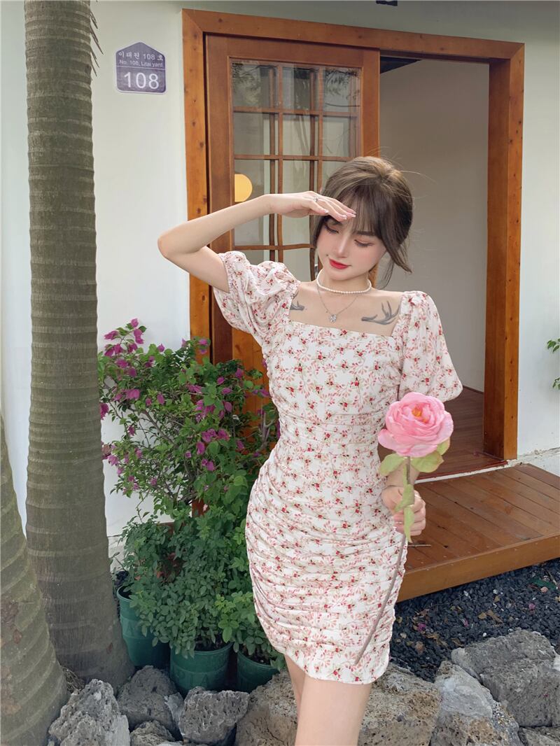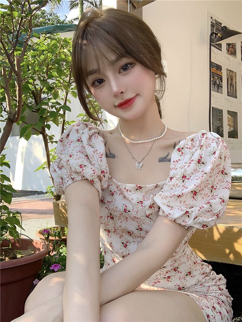 スリーブフローラルドレス サマーウェストショートスカート バンドバックカラー 夏物 花柄 スクウェア セブンプリンセス13260624903