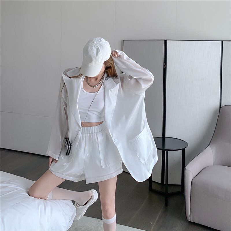 レッドソリッド カラージャケット ハイウェストウェストショーツ ブルマー シルク ソリッドカラー セブンプリンセス41103721445