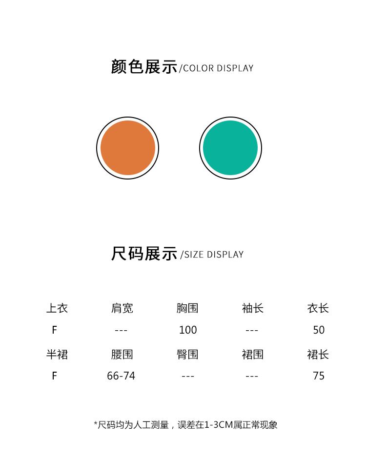 色:ブラックトップ,オレンジ色のスカート,緑のスカート,アプリコットトップ
