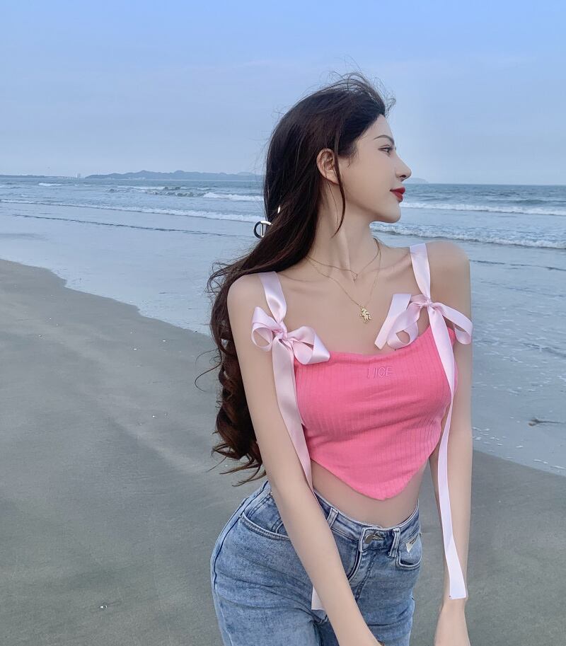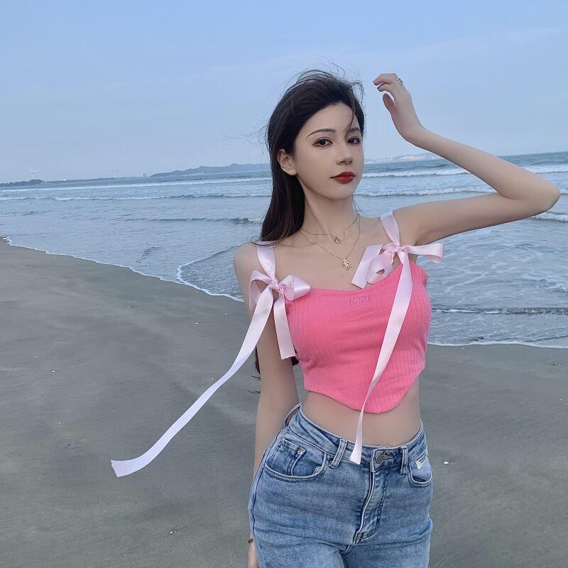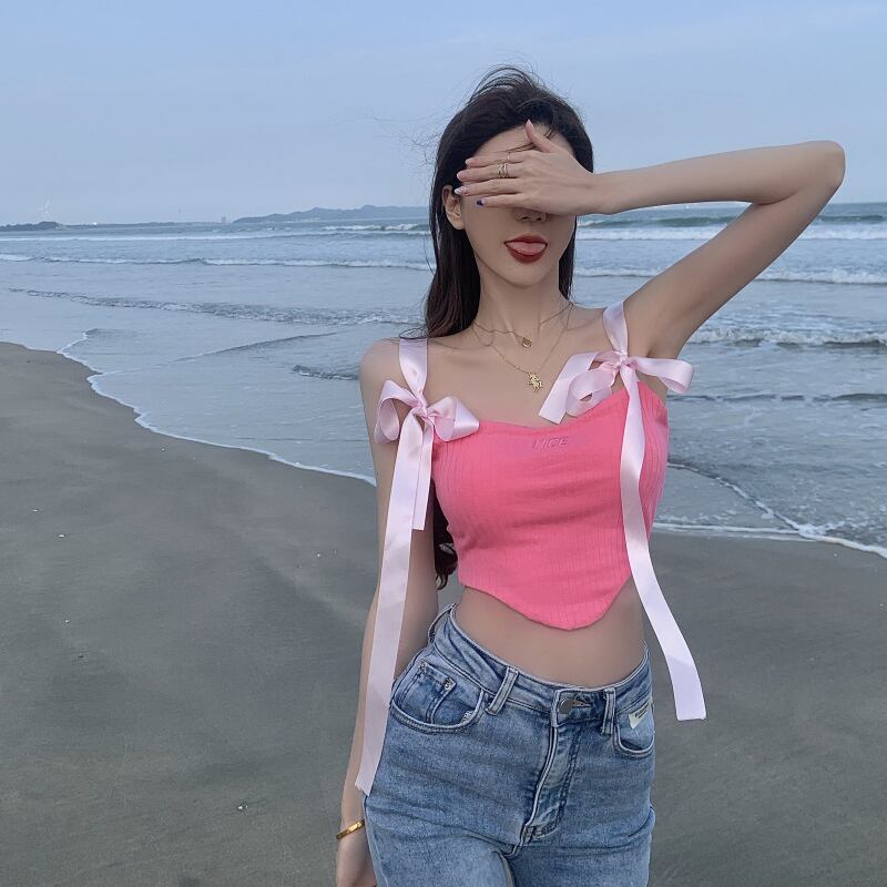 バックサマーショートトップス ピンク リボン 夏物 セブンプリンセス82636747719