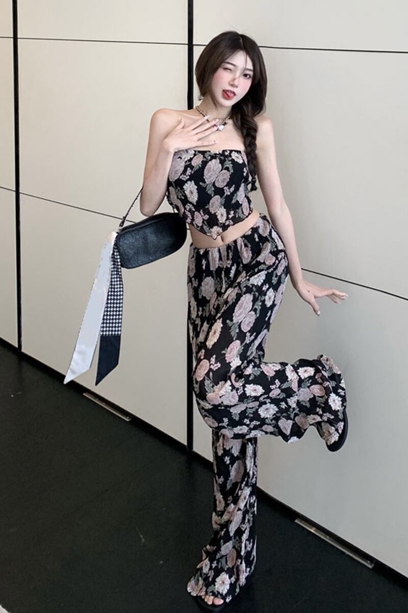 色:黒いチューブトップ,黒のズボン(伸縮性あり),アプリコットチューブトップ,アプリコットパンツ(伸縮性あり)