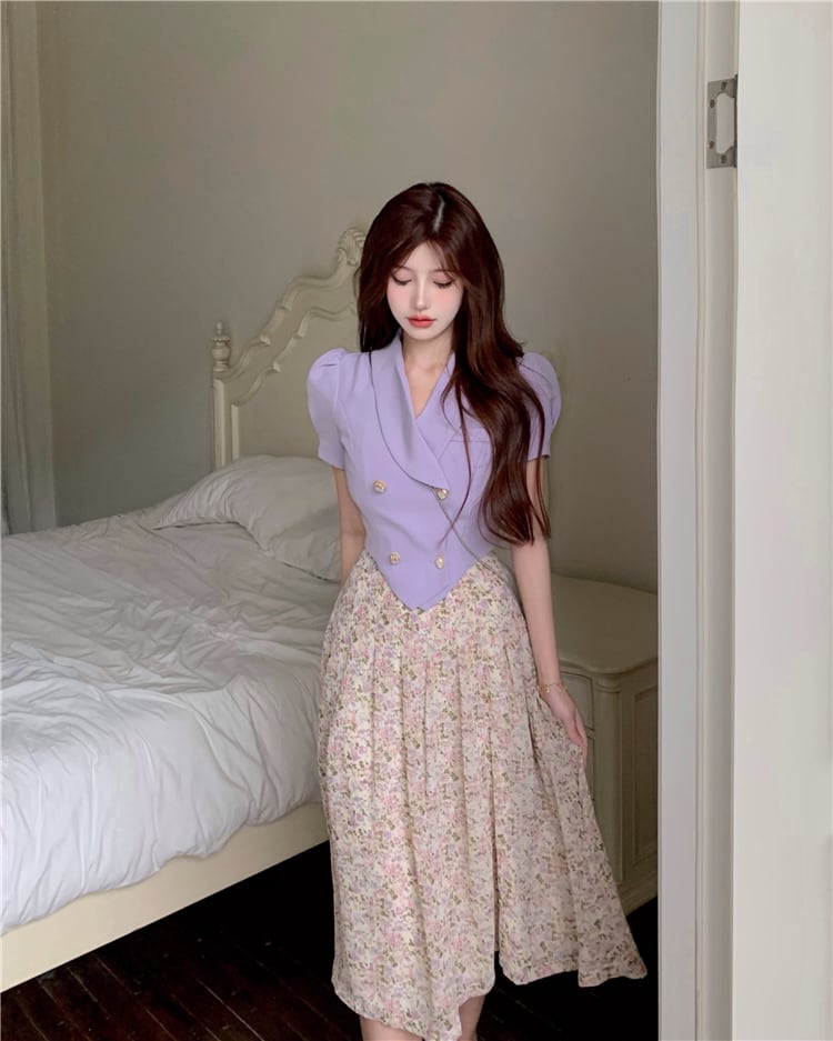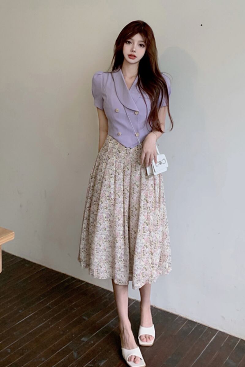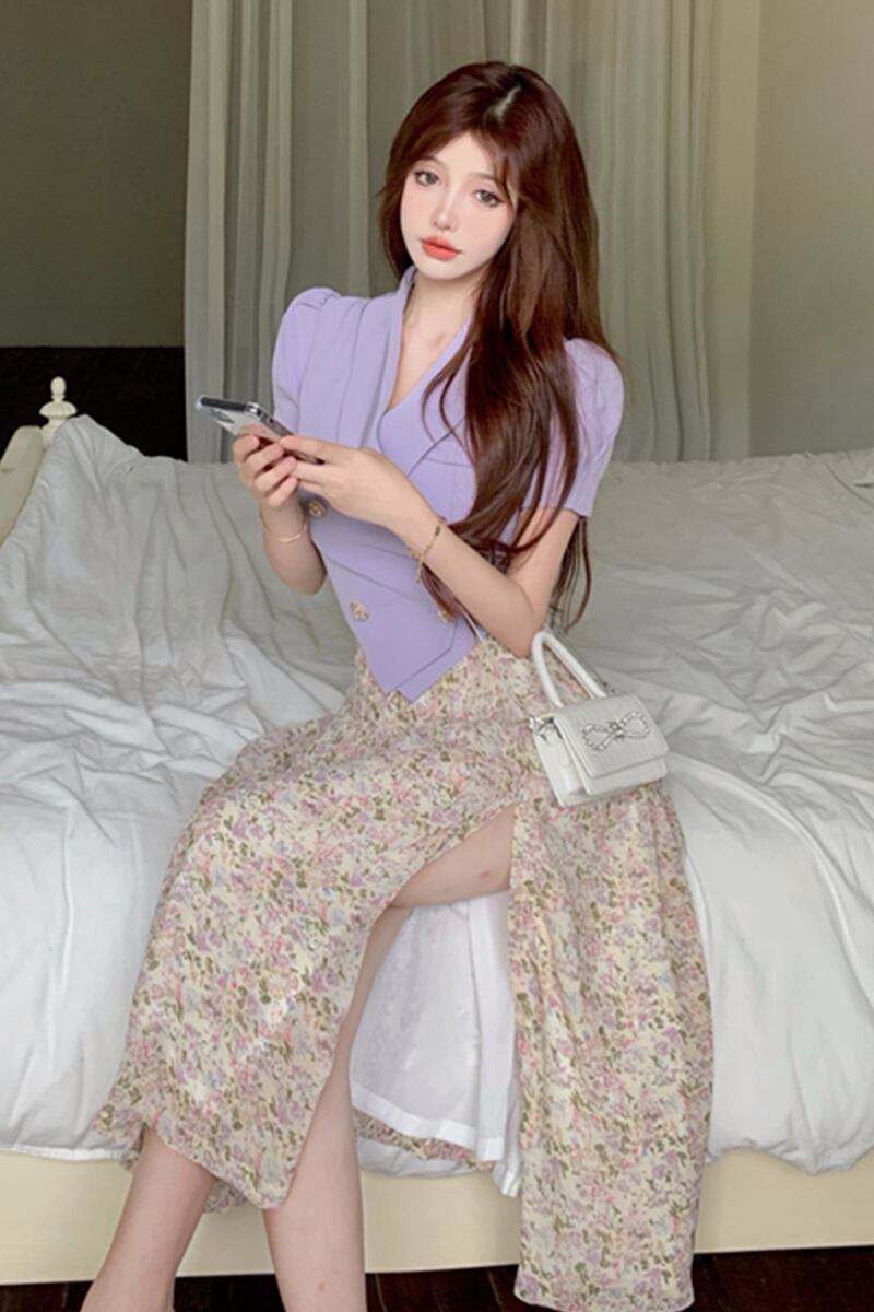 フローラルスカート サマー薄手シフォンハイウェストウェストスタンダードAライン レトロ 夏物 花柄 セブンプリンセス7138421865