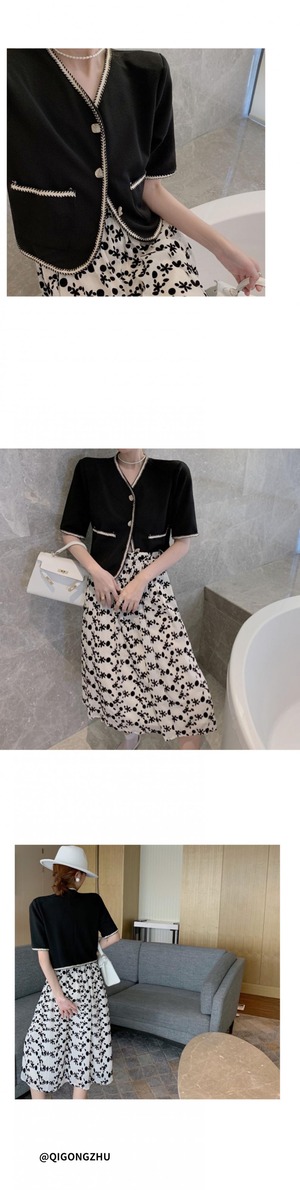 ジャケット サマー薄手スタンダードVネックショートスリムカーディガントップス レトロ 夏物 セブンプリンセス83511502620