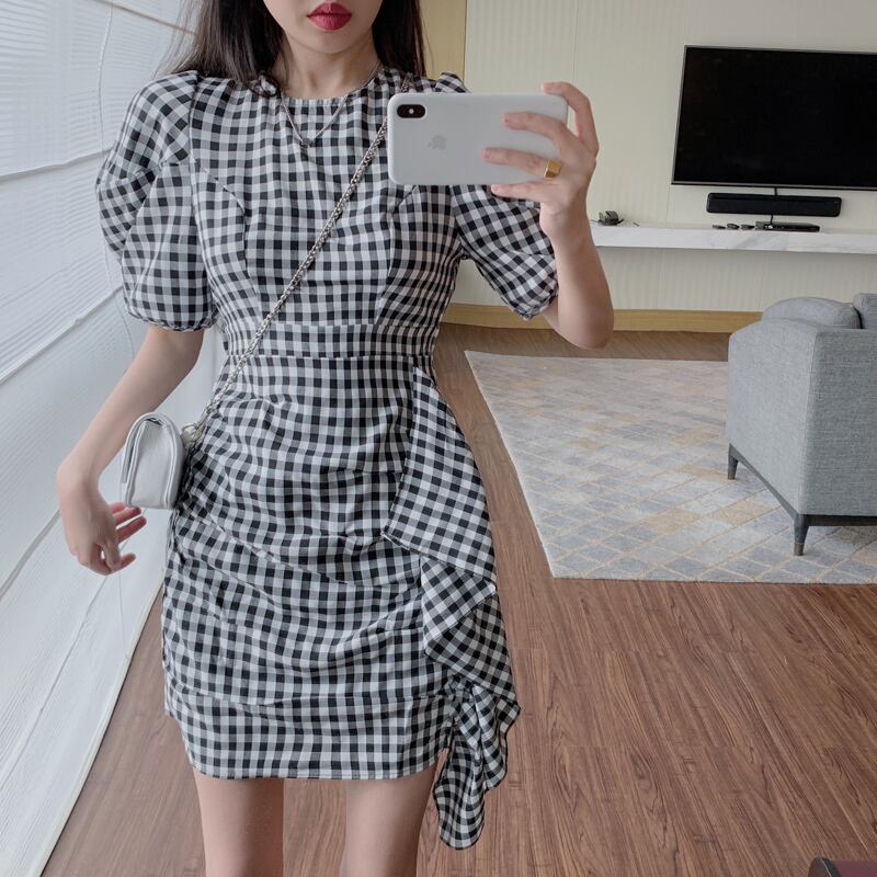 スリーブドレス ウェストスカート サマー薄手格子柄 夏物 セブンプリンセス8131982244