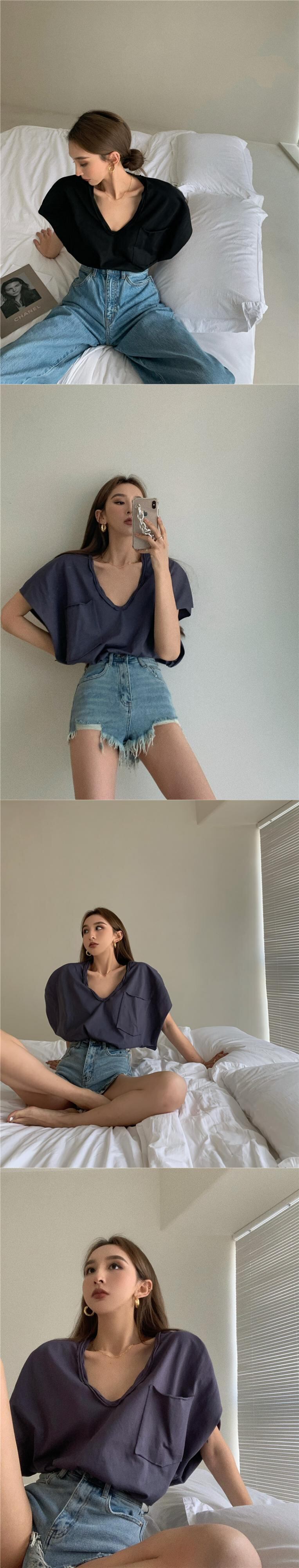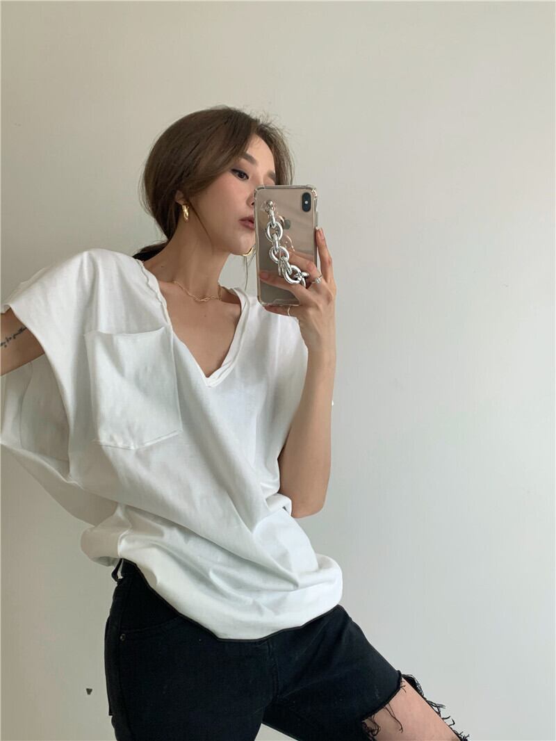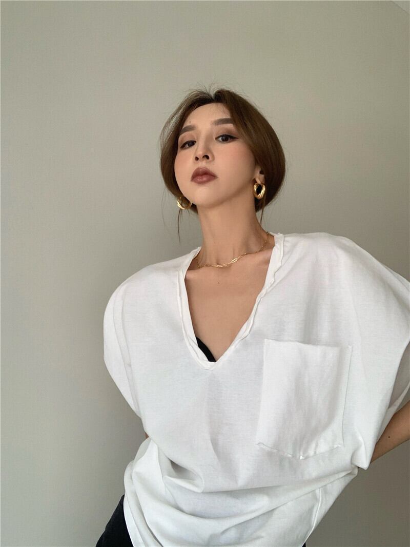 Tシャツ サマー薄手Vネックカジュアルルーズロングトップス 夏物 セブンプリンセス20023708076