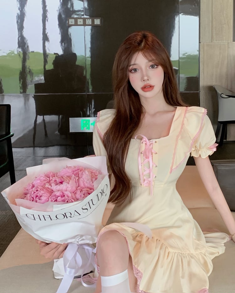 スリーブドレス スカート サマーウェストAライン 大人ガーリー スウィート キュート カジュアル 夏物 セブンプリンセス57603597742