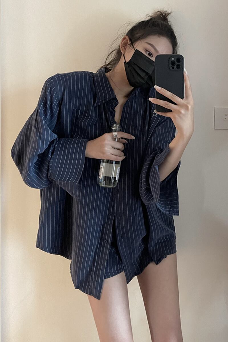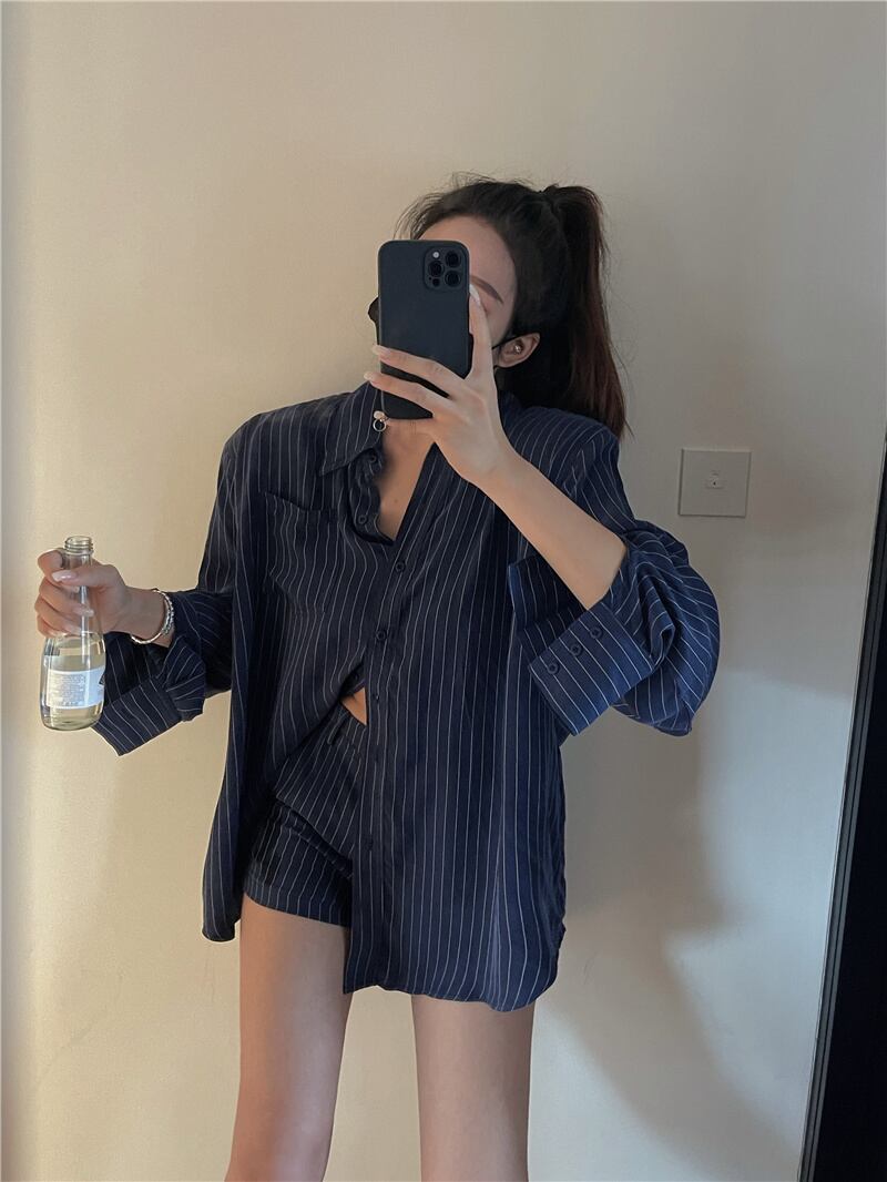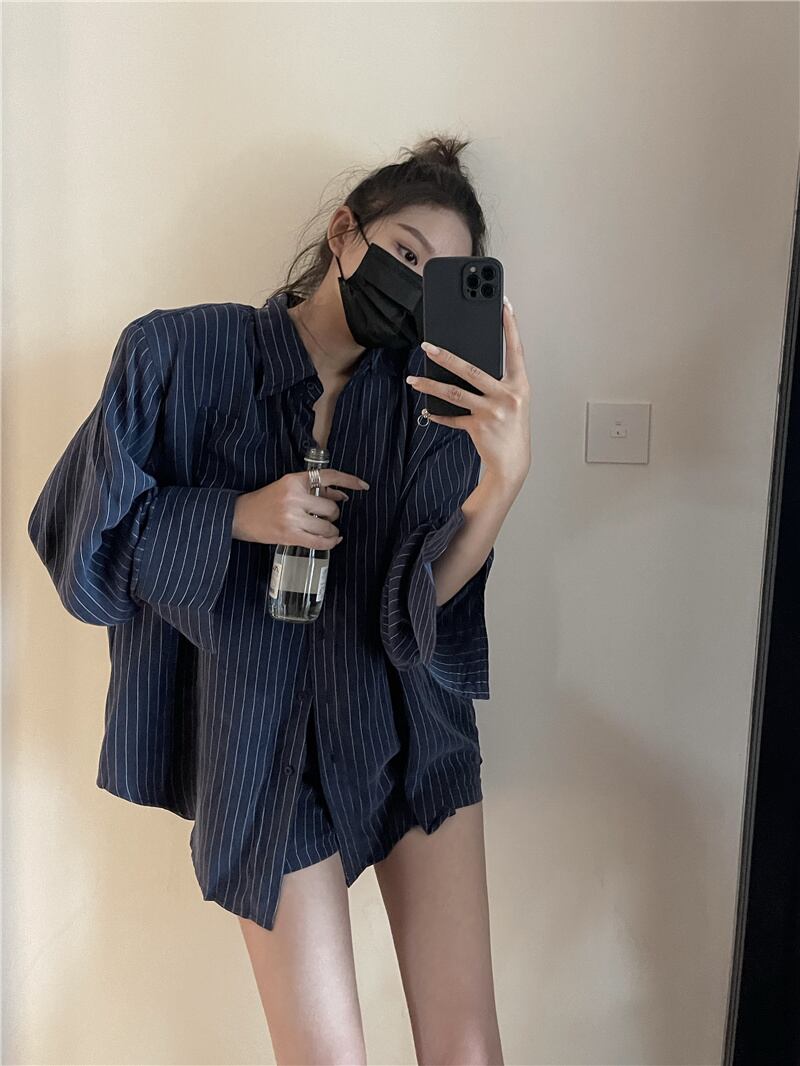 ストライプシャツ スタイルスタンダードサマー薄手ルーズカジュアルブラウス ロング レトロ 夏物 セブンプリンセス39718645351
