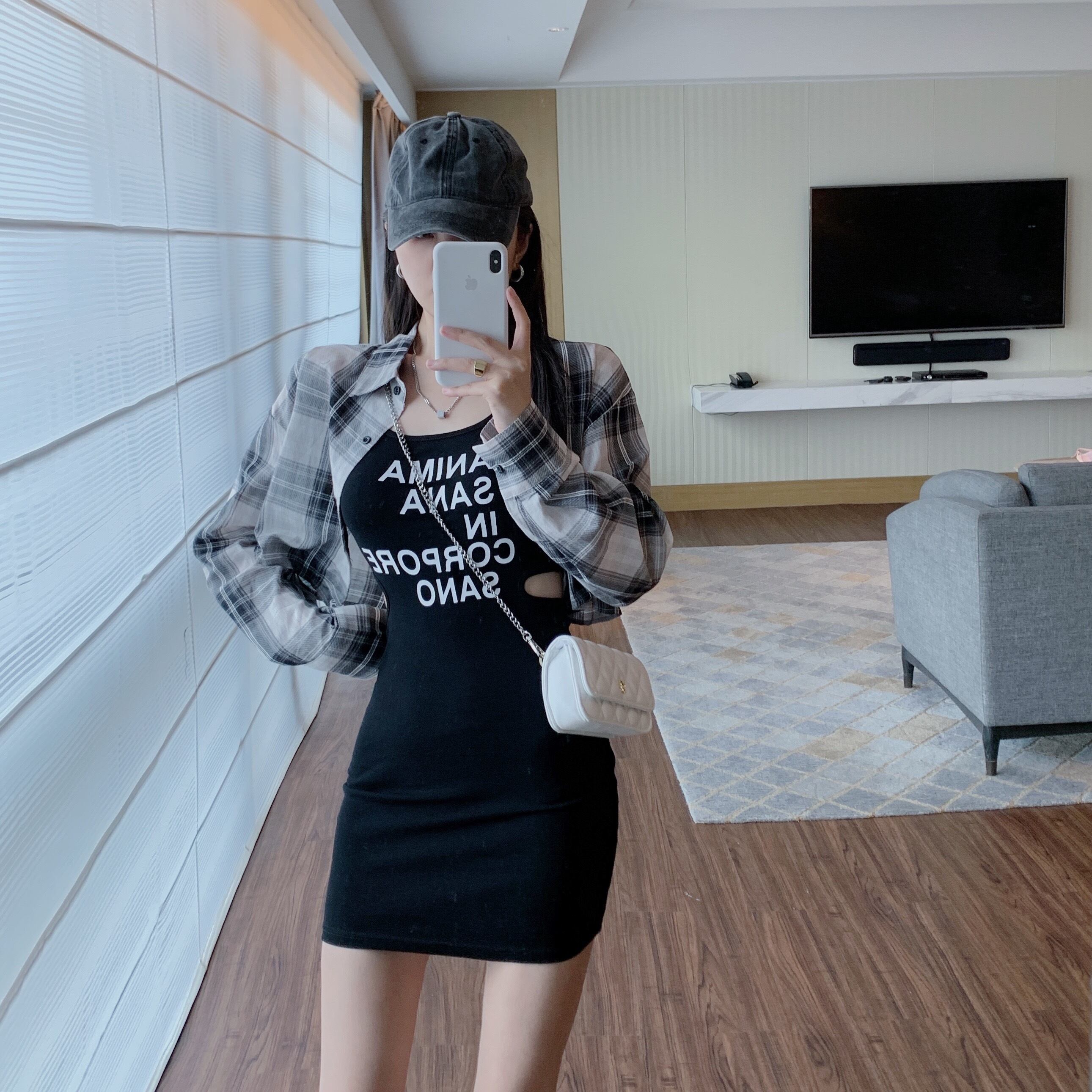 スタイル格子柄ショートシャツ ウェストプリント柄スカート セブンプリンセス54303301687