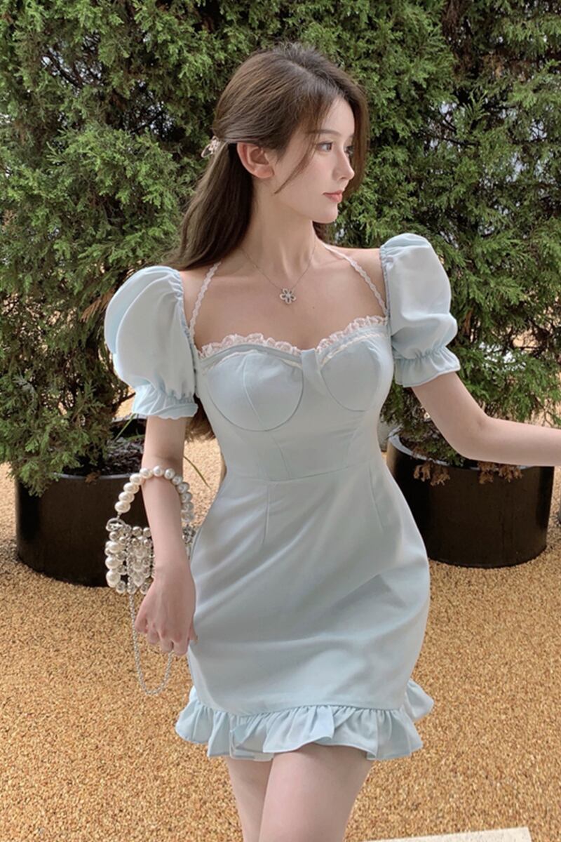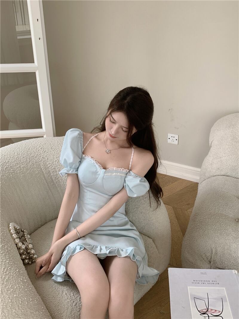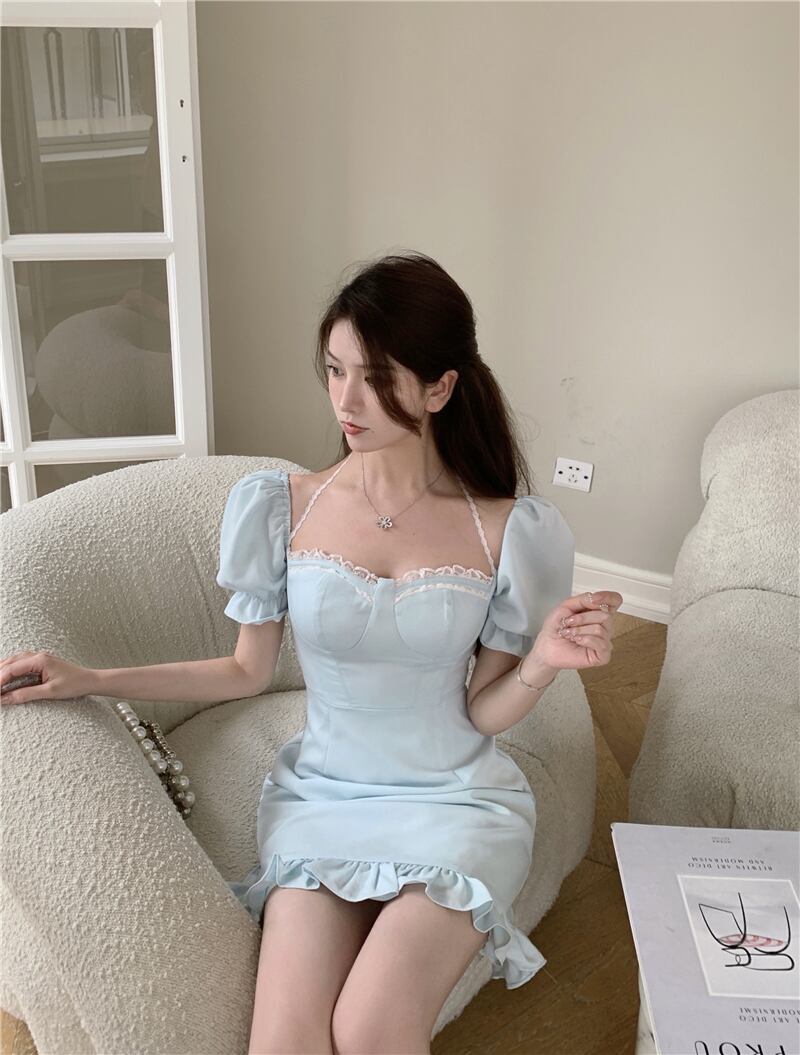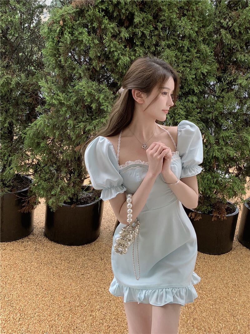 スリーブドレス レースサイドカラースカート サマーウェスト 大人ガーリー スウィート キュート カジュアル 夏物 スクウェア セブンプリンセス26100862563