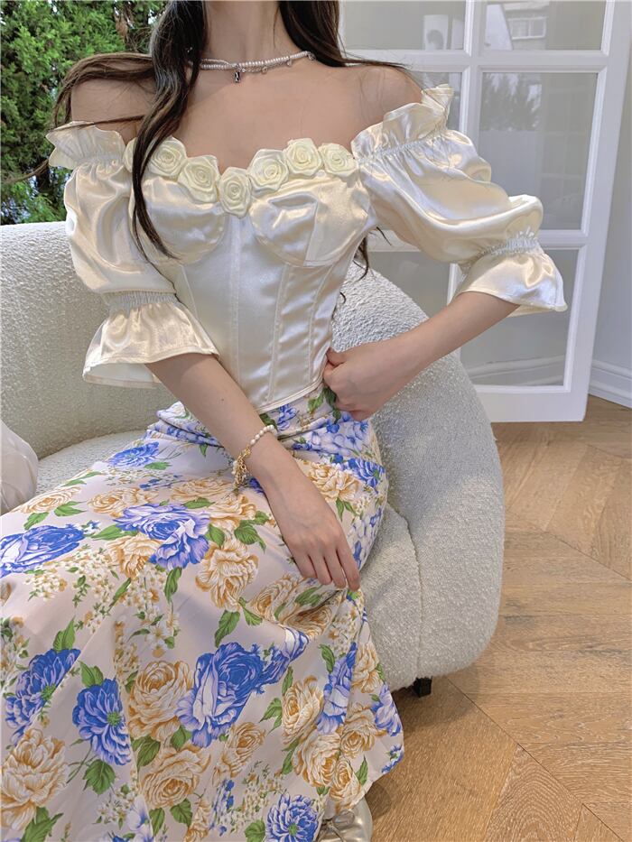 スタンダードフローラルスカート サマー薄手スタイルハイウェストウェスト レトロ 夏物 花柄 セブンプリンセス793270142