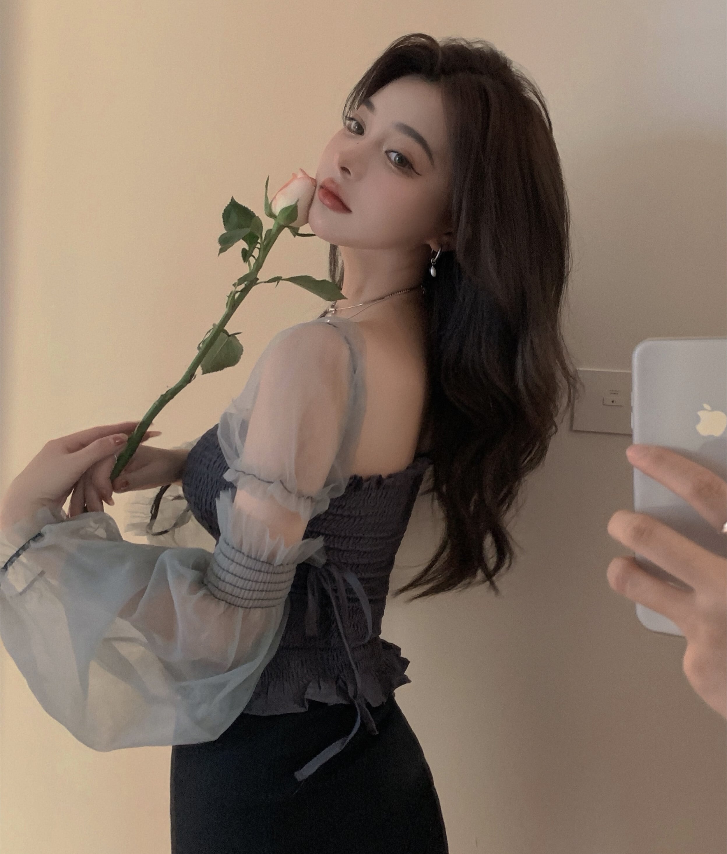 ダークメッシュシャツ サマー薄手スリーブトップス レース 夏物 セブンプリンセス53844708619