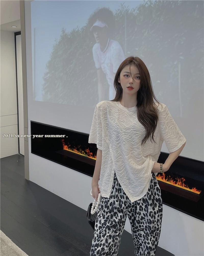 Tシャツ サマールーズラウンドネックライン薄手ホワイトトップス 夏物 Oネック セブンプリンセス73118726303
