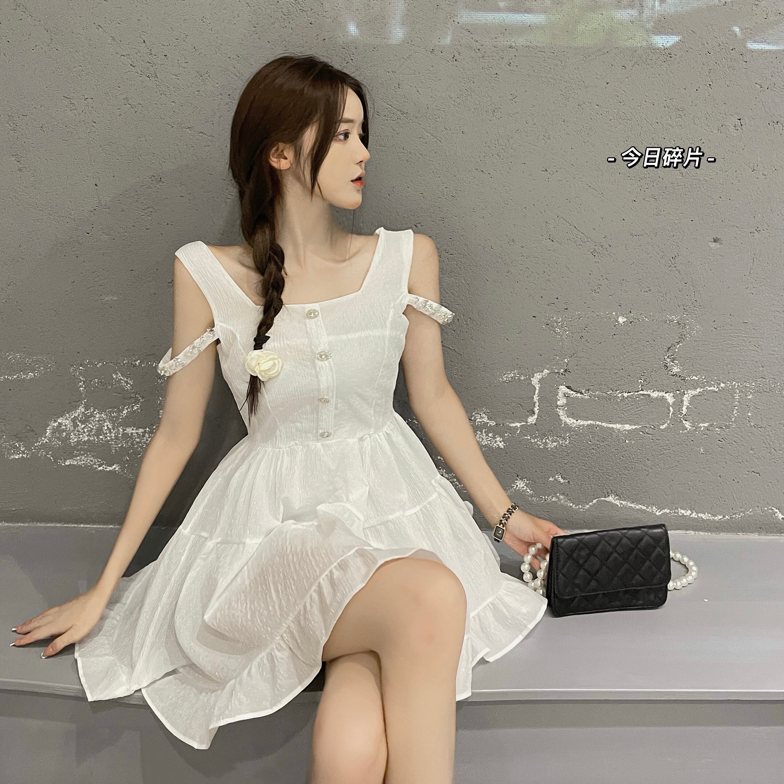 スタンダードカラードレス ブラックスカート サマーウェスト薄手Aライン レトロ 大人ガーリー スウィート キュート カジュアル 夏物 スクウェア セブンプリンセス42805405867