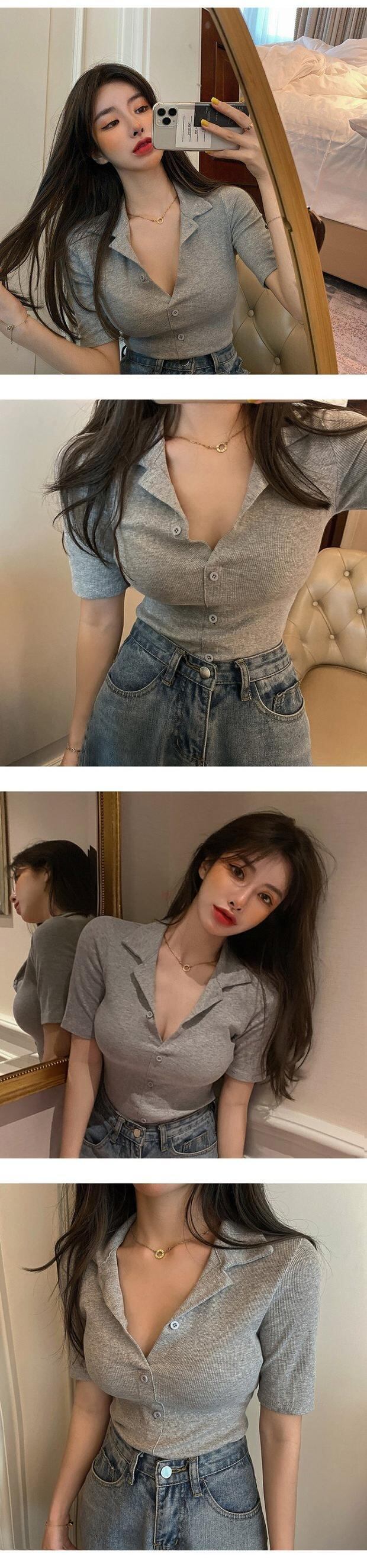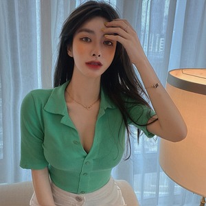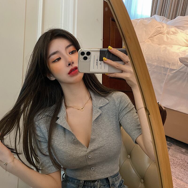 トップス レディースサマースリムショートVネックホワイトTシャツ 夏物 セブンプリンセス99834088505