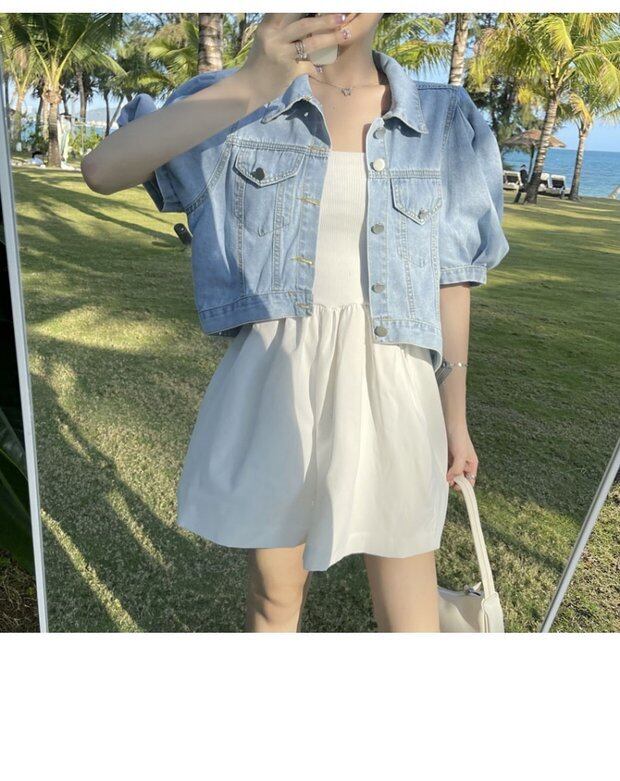 色:白いチューブトップキュロット,黒のチューブトップキュロット,デニム半袖トップス