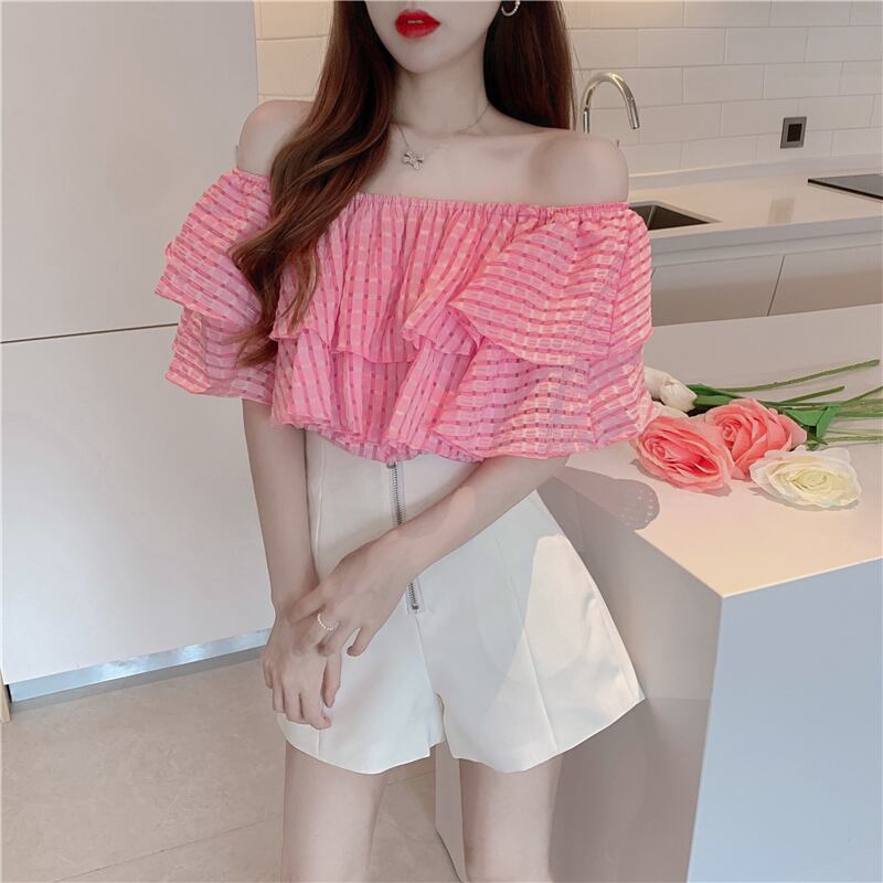 トップス サマーショートラッフルシャツ シフォン ピンク 夏物 セブンプリンセス11084899221
