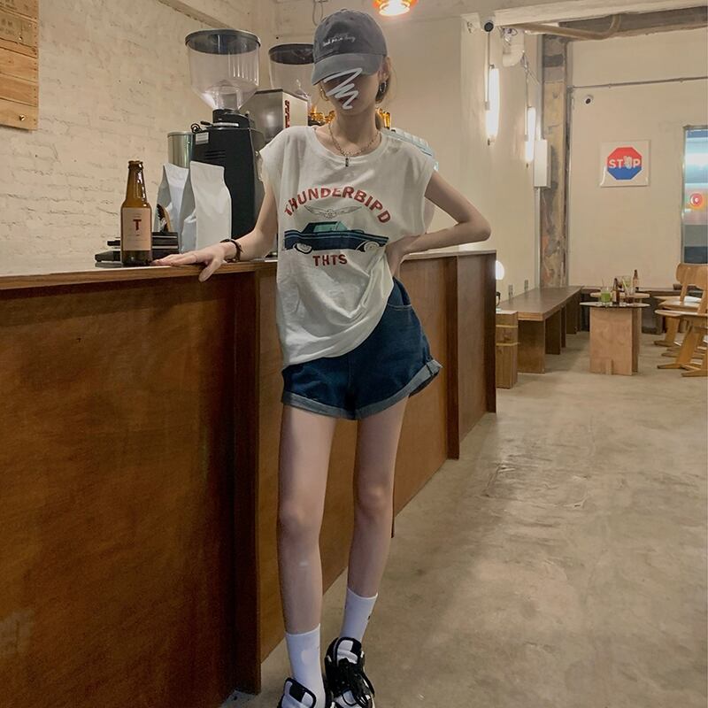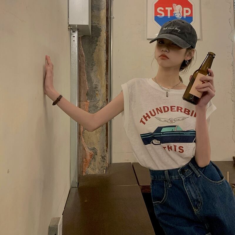 ホワイトTシャツ サマールーズプリント柄ノースリーブ 夏物 セブンプリンセス92124647371
