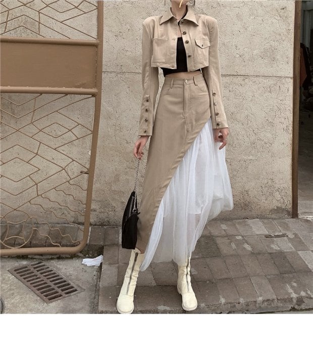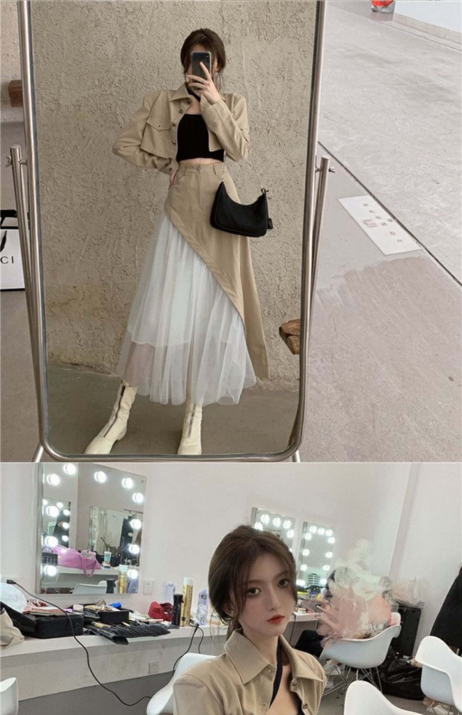 スカート スプリングハイウェストウェストロングメッシュ 春物 ステッチ セブンプリンセス18025698811