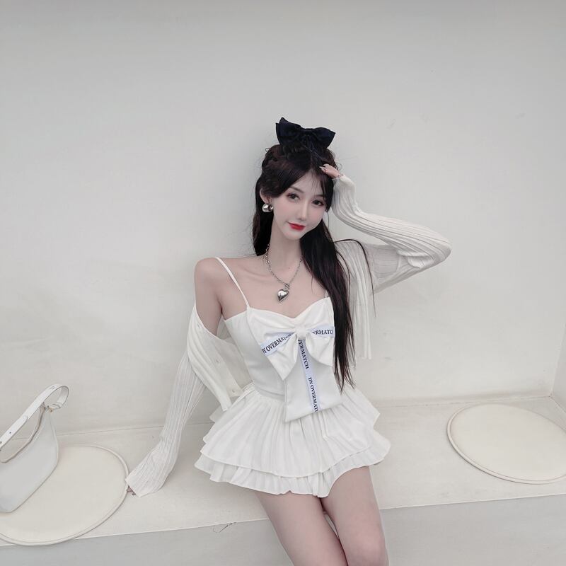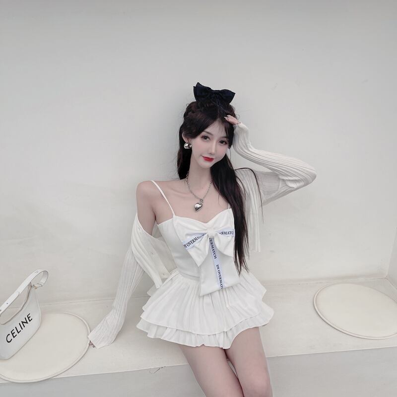 色:白いカーディガン,リボンストラップ,フラワースカート