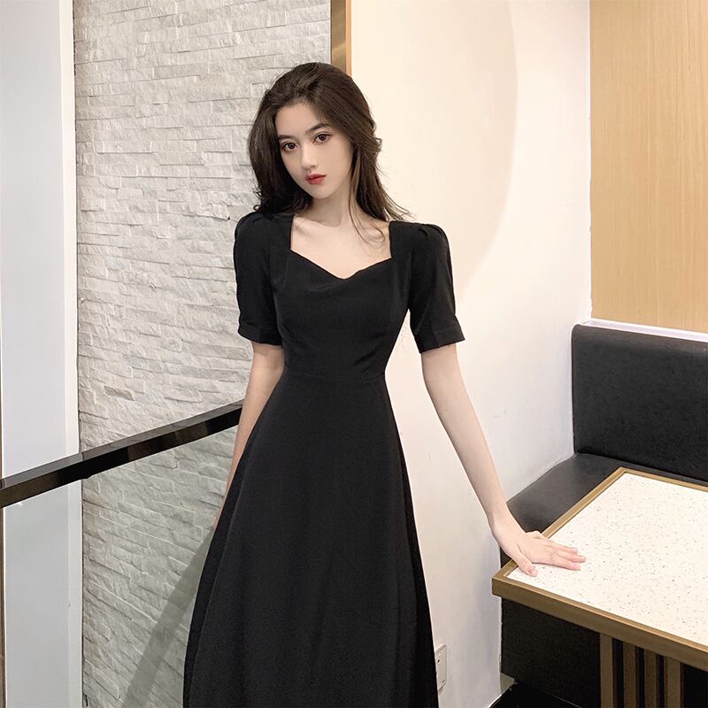 ドレス レディースサマーカラーブラックスタンダードスリムAラインロングスカート レトロ 夏物 スクウェア セブンプリンセス31581399503